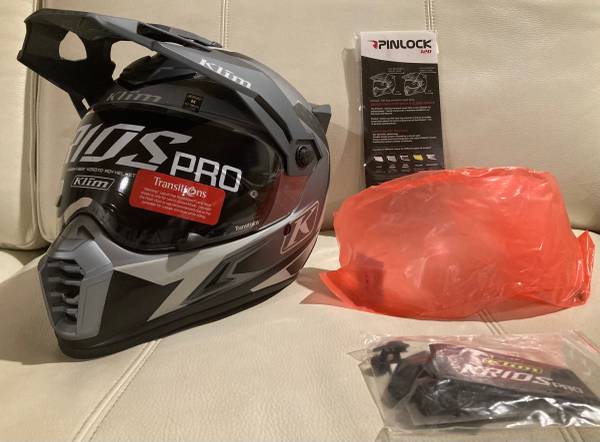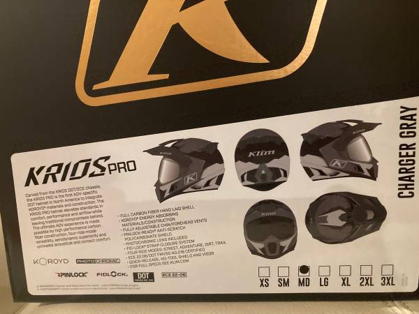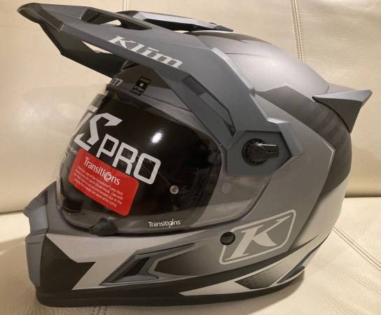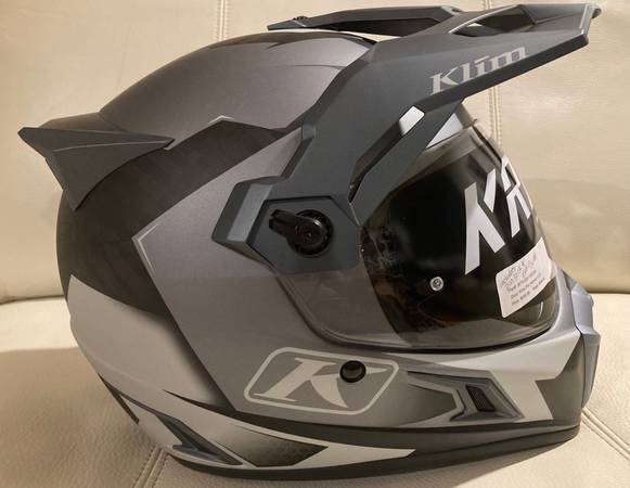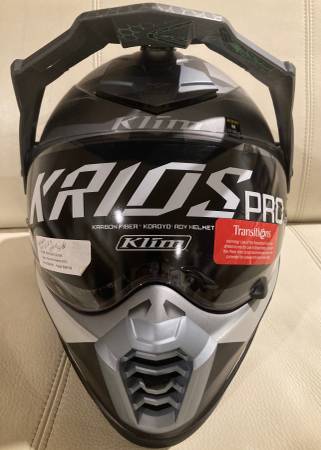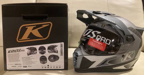 Brand new in box Klim Krios Pro Dual Sport Motorcycle Helmet. Size Men’s Medium. Color is Charger Grey. Comes with transitions photochromic shield, and soft cover. This was a display so has been tried on for size. Absolutely perfect condition, no damage or scratches.