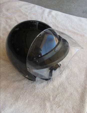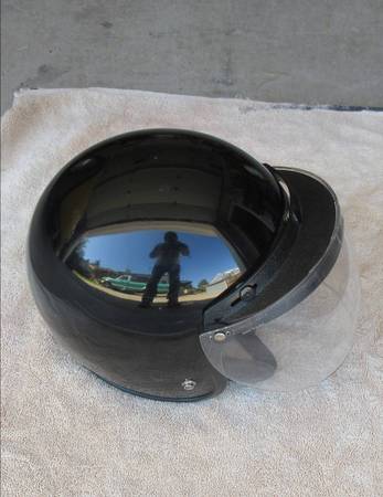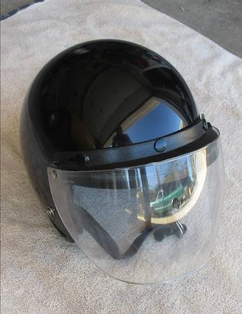 Vintage 1979 motorcycle helmet (X-Large) black with bubble flip up shield In good condition $80 firm Warren No emails or texts.