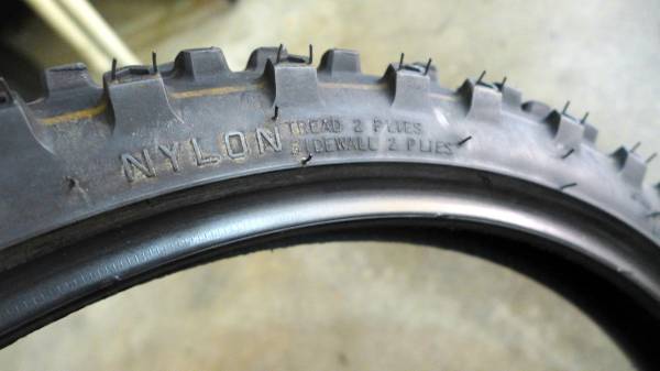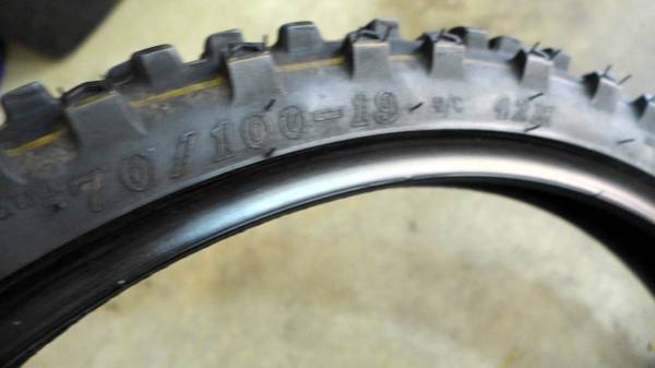 Slightly used but still has lots of life on it. Rear Tire for kid's size motorcycle or pit bike. Size = 70/100 - 19 $20