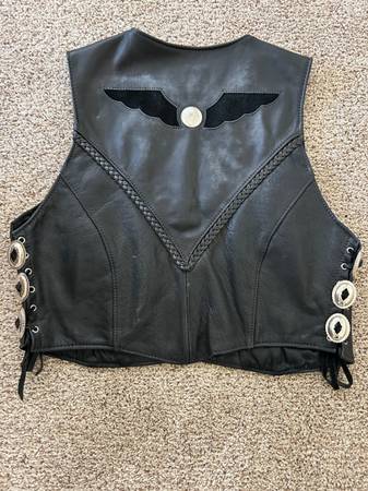 Ladies leather jacket, chaps, vest, and gloves - motorcycle parts -...