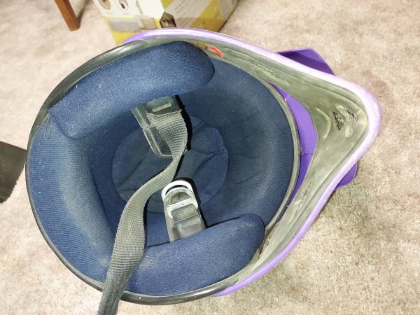 size large but actually not that large helmet in good condition. call or text Carla H at 72 oh, sixer 20, zero nine 74