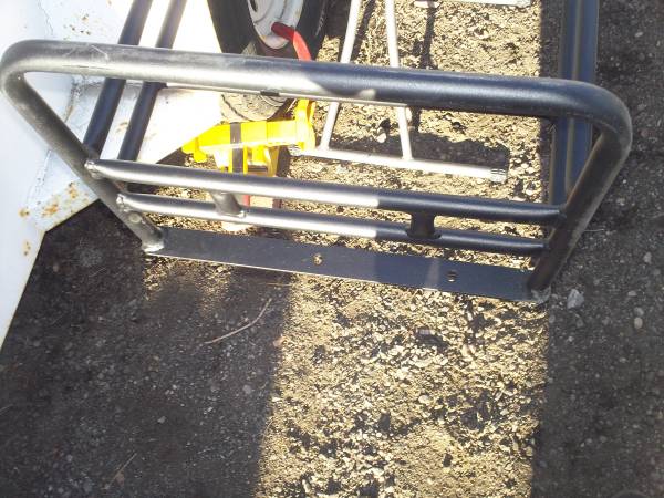 ID BY PHOTOS ONLY))--------------------------------------------HEAVY METAL STRAIGHT - --(1) ONE OF THESE ONLY-- 1(ONE) OEM GREAT USED DEALER ITEM WERE SELLING AS USED AS IT HAS BEEN STORED A LONG TIME WITH NO PACKAGE-with scratches & marks on top of both side rails --ALL TABS GOOD --MOUNT & USE--ITEM IS STRAIGHT--NO WAITING IN STOCK--JUST AS SHOWN--AS PHOTOED -MOUNT & USE --ID BY photos ONLY ----on either end --2 mount holes are 5&7/8th inch ete-------no dents ours is straight --POLARIS UNKNOWN RACK ? POLARIS UTV LUGGAGE RACK HUGE -----------------------minor MARKS ALL OVER HEAVY METAL OEM----18 deep x58 wide x 14&1/2 tall ---------