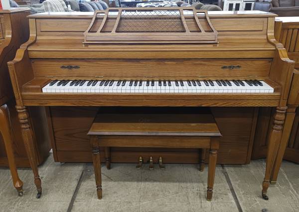 Beautiful oak Kawai console piano, built for reliability and great tone in a compact size. Known for its smooth action and warm sound, this instrument is perfect for students, teachers, or families who want a quality piano that fits nicely in the home. Comes with matching bench.