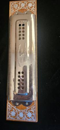Lovely Harmonica, Hochste Auszeichnungen , Ande Koch, Germany, piece of art - Tremelo Conzert harmonica, 8-1/2" x 2", embellished wood and stainless steel. Heavy and quality made! Key of C. $25
