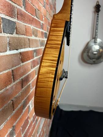 With a lovely choice Sitka spruce top, absolutely incredible flamed maple back and sides and neck, and Waverly tuners, this mandolin is as appointed as most of us will ever need, and sounds incredible to boot!