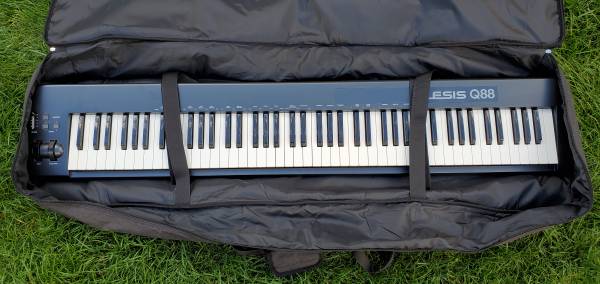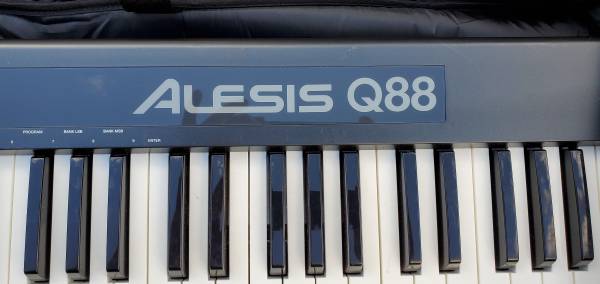 Common, standard ALESIS Q88 keyboard/midi controller. Light usage, minor cosmetic scratches. Tested fully functional. No cables included. Includes softshell carrying case.