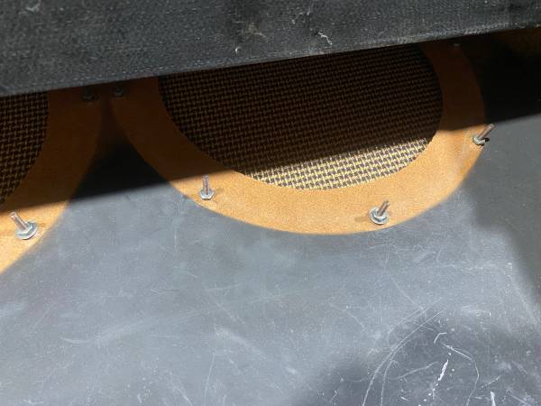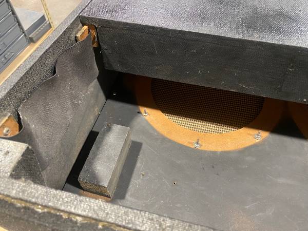 Offered is this 1960s Silvertone Twin Twelve 2-12 Speaker Cabinet. This 2 12 inch speaker cabinet is very sturdy, considering its age. The grill cloth could use some attention, but it has never suffered water damage. That’s what usually kills these. Original speaker mounting screws are intact. This is the piggyback cabinet original to the model 1484 all tube head, which is highly thought after.