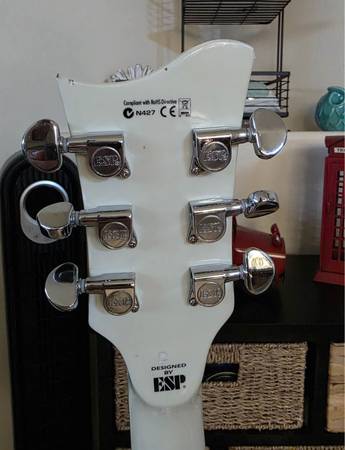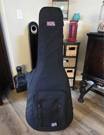 Pretty ESP guitar with hybrid Gator case/gig bag. ESP LTD AC10E pearl white with mother of pearl inlays in the fretboard and around the sound hole. Spruce top, mahogany body, rosewood fretboard set...