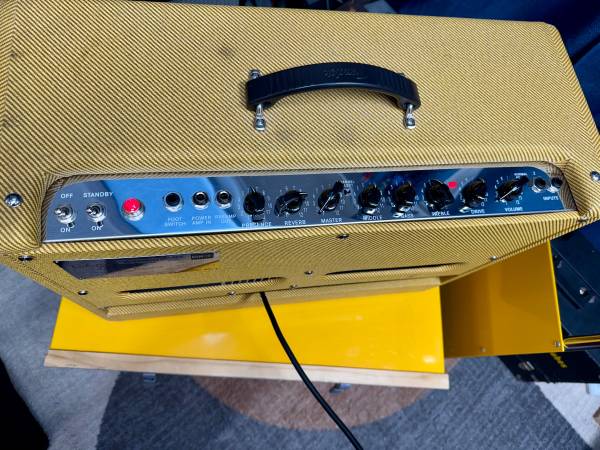 An absolute modern classic. Luscious Fender cleans with deep reverb, but gets nice and dirty with the Drive channel. Recently tuned up, no noise when operating the controls, plus a new set of preamp...