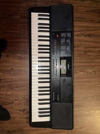 Free Casio CT X700. It’s a really great keyboard. They keys aren’t technically weighted but to me they feel really good, they’re piano size and aren’t plasticky and clicky. 3 levels of velocity (touch sensitivity) so it’s a great keyboard for a child to learn on if you want them to learn on something somewhat close to a piano.
