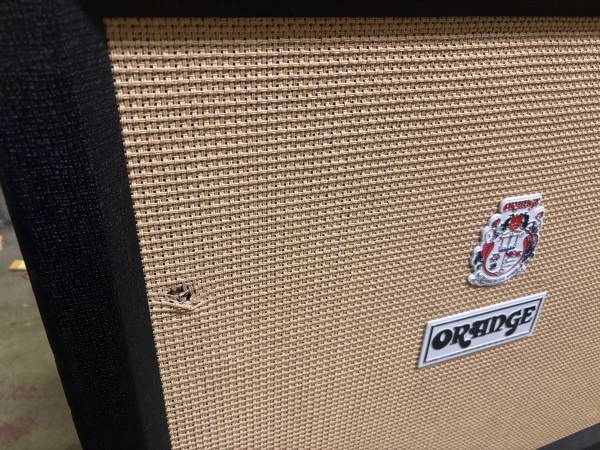 Cab sounds great. I mean, it’s an Orange 4x12 loaded with V30s. It’s my favorite 4x12 model in existence; I just have more cabs than I can possibly use. This cab has signs of being heavily used, but sounds as good as ever.