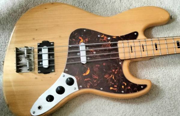 Here is a real 1970's Jazz Bass. Made sturdy, like all the basses in the 1970's, from Japan. It features Two Chrome, lipstick pickups, A tortoise pickguard, Block fret markers, volume, volume, tone knobs. It has its share of cosmetic wear, from being used through out the years. Sale is for bass only.