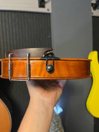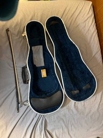 Comes with a kit upgrade including; ebony chin-rest, an oblong, hard-shell, plush-lined case w/extra storage, a 1/2 scale bow, rosin and dreams of a musical journey. Yours to own and study on or for your children to study on for: $350.