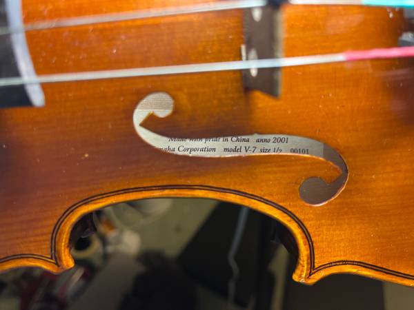 I have a great [fully setup] 1/2-scale, Yamaha V-7 violin with kit upgrade for sale. The V-7 is a step-up violin for a young student. Designed with advanced tonal qualities in mind as well as ease of play, the V-7 isn’t a “beginner violin” or a “violin shaped object” (VSO) it’s a real instrument any student would be proud to study on and own.