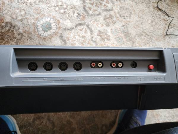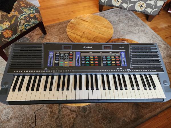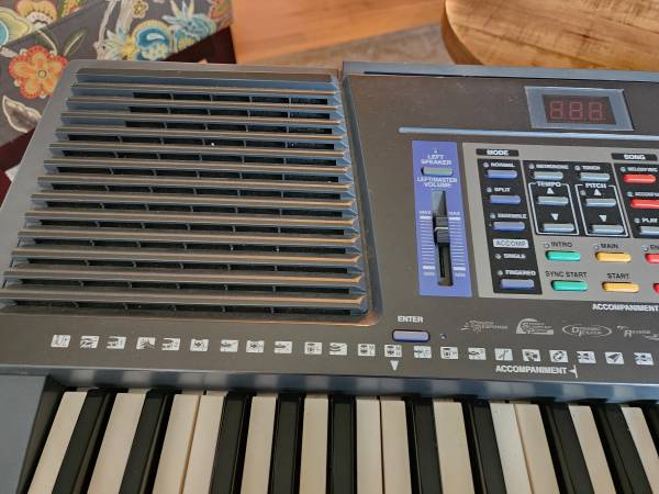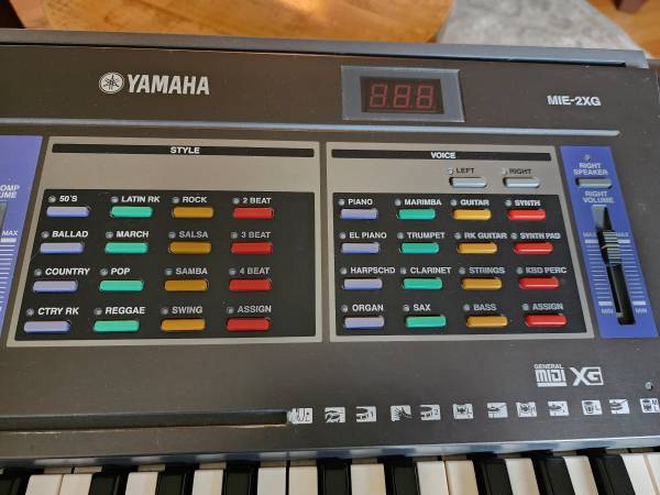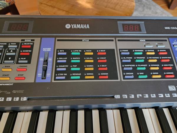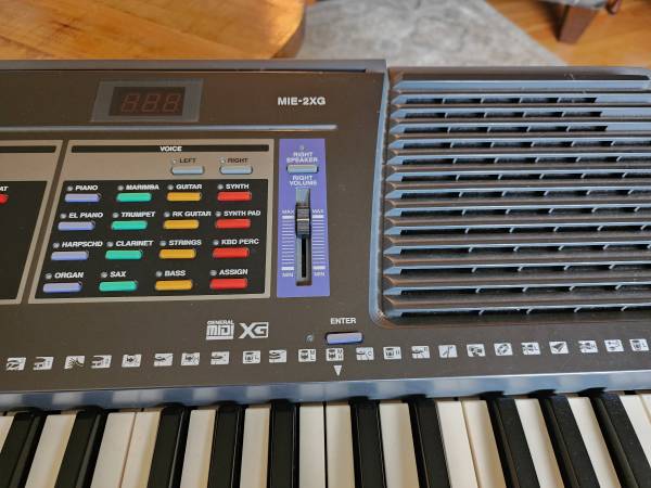 Yamaha MIE2XG keyboard. Lots of cool settings and effects. Has on board speakers or you can send a signal out with RCA or Midi connections. 61 keys and includes power supply.