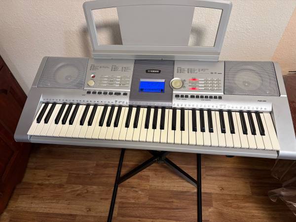 The Yamaha PSR-295 is a 61-key, touch-sensitive keyboard with built-in speakers.