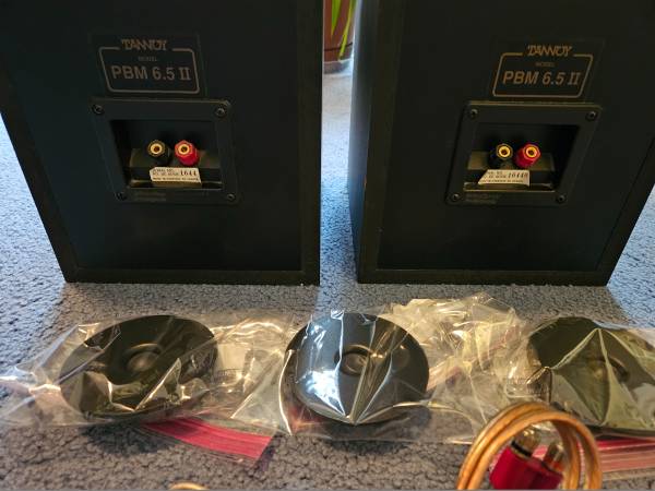 Tannoy PBM 6.5 II Studio Monitors w/xtra Tweeters. Excellent condition. Includes heavy cables with banana plugs. Also includes 3 xtra tweeters of which one of the extra tweeters has a dent in the small round cone at the center.