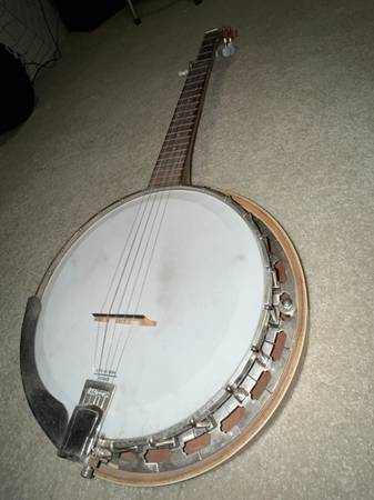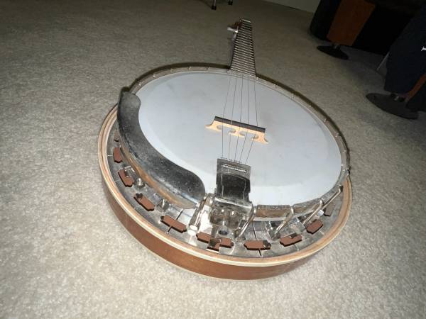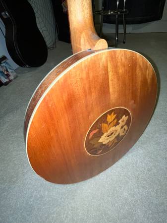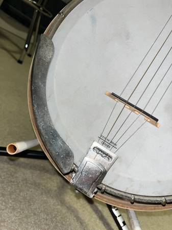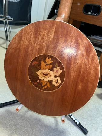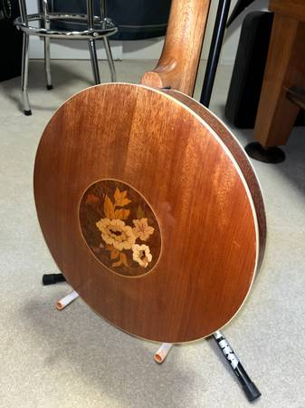 The wood-work on this particular banjo is in pristine condition with hardly a scratch. I am more a ‘guitar’ enthusiast so this banjo has had little play-time. Not certain of it’s history other than what was shared above. It’s been more a decoration than anything else. Needs a good dusting and likely some loving and new strings.