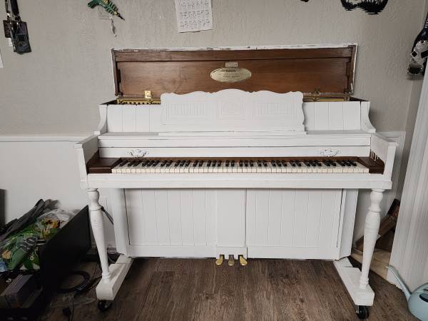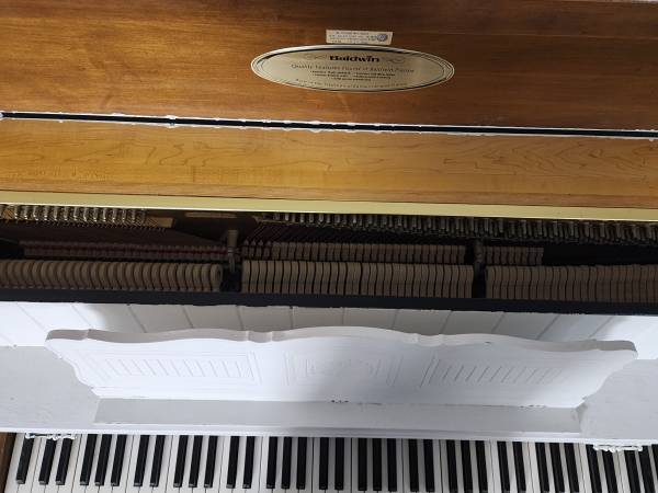 Beautiful Baldwin was utilized as a student practice piano before purchase, is perfectly in tune with itself, one half step flatter than concert tuning (play in F#maj for friends to play with ya in Gmaj on their instruments!)