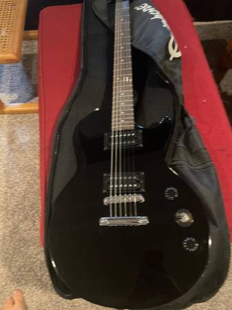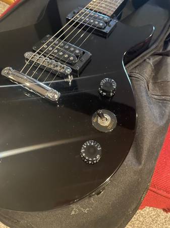 Les Paul electric guitar in pristine condition. It includes soft carrying case and amp. Purchased at Guitar Center.