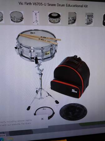 VIC FIRTH CHROME SNARE DRUM LIKE NEW, no dents or dings, basically unused, 14" by 5.5". Includes heavy duty chrome stand, height-adjustable, back-pack style case, Sells for $299.99 at Sweetwater....