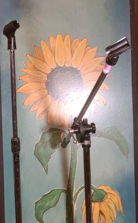 These are 2 microphone stands with clips and solid, heavy duty bases. One is straight and one has an adjustable arm. Also includes 2 extra heavy duty bases. Only $30 for these solid stands! Cash...