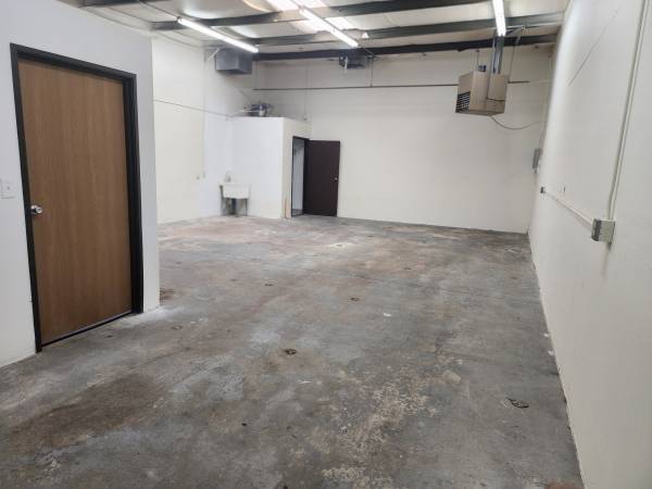 1,000sf of Office (12 x 12) with heat and a/c and the rest is warehouse with a heater, 10’ x 10’ overhead door with skylights.