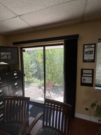 October Availability - private office space with kitchen area, bathrooms and cleaning service. You get the unique chance to operate your business in the most beautiful and serene office space in Denver . Great space for one or two people with first part sectioned off and a larger back office space with a kitchen in the middle. Imagine a space with a sliding glass door that opens to the Highline Canal in the back and the front entrance welcoming with plants and nice landscaping. Bring your dog if you like – this is a very nice place for businesses of all types – mental health, general office administration, finance. Relaxing environment with good neighbors and a laid-back vibe.