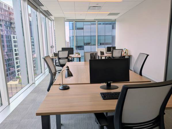 With room for up to 8 team members, this flexible office suite features floor-to-ceiling windows with panoramic views of Union Station and downtown Denver.