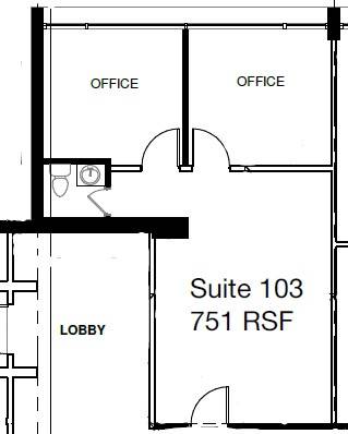 • Suite 110: 689 sq. ft - 5 Rooms including a conference room and a private office. ($1,400/month)