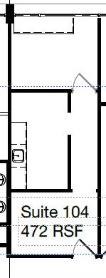 • Suite 104: 472 sq. ft - Bright single office with sunny windows, 2-3 rms and a sink ($900/month)