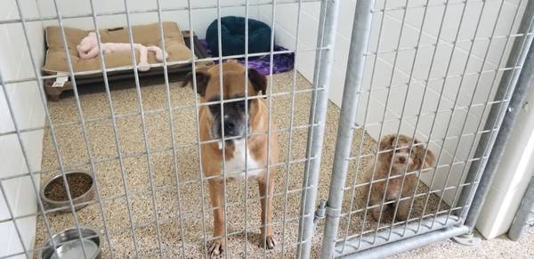 We are a Pacfa-licensed boarding facility. We have nice, climate-controlled indoor kennels with cots and two private turf yards for your dogs to play in. We have an excellent and very experienced staff. This is owner-operated, and we live on the premises. We charge $35 per night. We give military and multi-dog discounts.