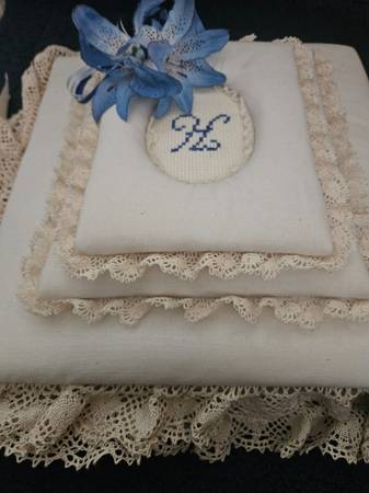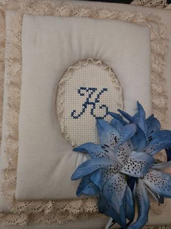 This Beautiful Vintage Padded Quilted Fabric Handmade Album features a Crossed stitched Letter H, Ruffle, lovely Orchid and a Ribbon to keep the Album closed. (12"L x 11.5"W) You can fill the Album with acid free paper to preserve your precious keepsakes or favorite photos. Pet and Smoke Free Home. The Album is in Very Good Clean Condition. Phone number listed is a Landline. Thanks for looking.