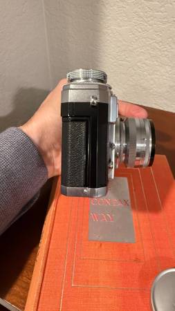 I am thinning my film camera collection and am offering this Contax IIa that was manufactured between in late 1952 or very early 1953. Excellent to near mint condition. Film tested. Comes with Zeiss Opton T Sonnar 50/1.5 that dates to 1952. Original lens cap included. Mechanical flash sync. Beautiful camera. Feels really solid. Very easy to use. Basically feels like a more solid Leica M3. Viewfinder is clear and focusing patch is nice and crisp (not fuzzy like some). All the controls work properly. Comes with original film take up spool.