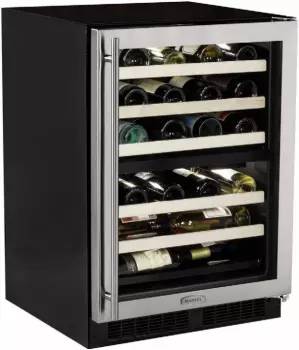 Marvel's wine storage solution provides two separate and independently controlled temperature compartments for red and white wine. Store and serve reds in the top between 55°F and 62F and whites in the bottom between 45° and 55° degrees.