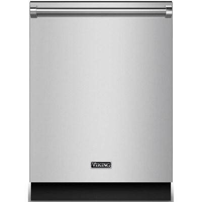 DESCRIPTION: Viking 24-inch dishwasher with installed Professional steel panel and water softener. This dishwasher provides spotless dishes with three wash arms and a triple filtration system. Variable pressure wash adjusts water volume, pressure, and temperature according to load size and soil levels.