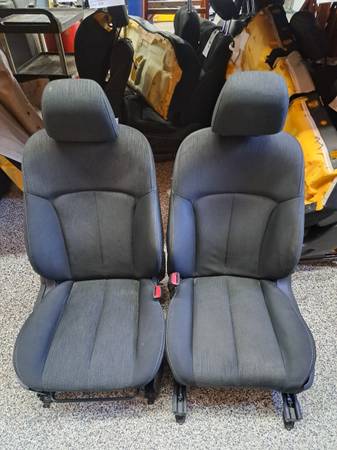 #7--1 Pair of front seats from a 2011 Legacy, the seats are black in color and are cloth material. Both seats are in good condition with no seam separation or bolster wear. Both seats have manual adjustments both seats are non heated.