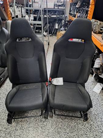 #1-- Pair of front seats from a 2018 WRX with only 52K. The seats are black in color with red stitching and they are cloth material. Both seats have manual adjustments and are heated. Both front seats are in good used condition no ripping or tearing, all stitching and bolsters are intact.