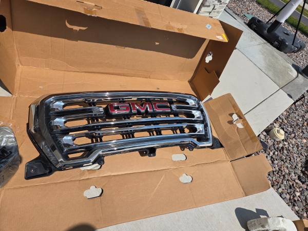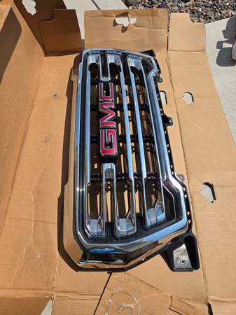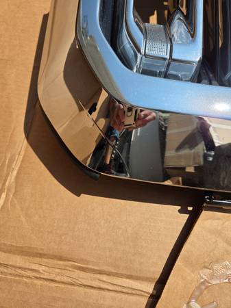 Stock grill not damaged just has small ripple in chrome bottom is black