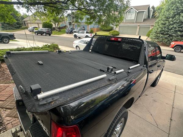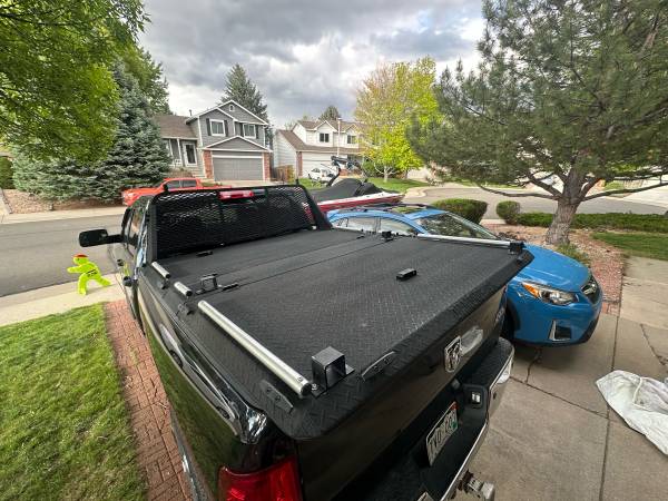 I bought this Diamondback bed cover for my truck, but it’s too long. It came off a 2024 Silverado 3500; the width is the same for my RAM 2500, but it’s 6” too long. The dimensions of the cover are pictured (71.5”W x 85.5”L). It’s the Rugged Black HD model with anchor plates, cleats, bed extender mounts, and HD cab guard. Holds 1,600 pounds. Over $2,500 new. Asking $900.