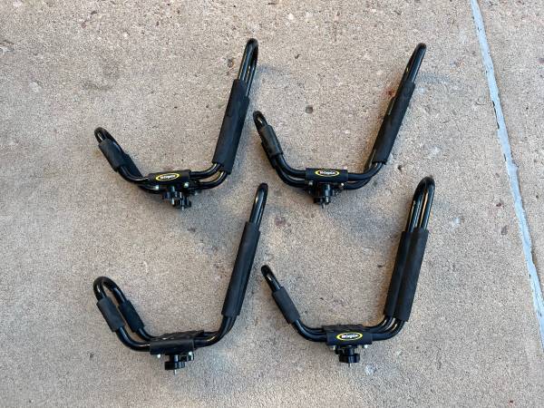 Like-new condition CargoLoc kayak mounts. Fits any Yakima, Thule or factory crossbars. No tools needed to mount. Tie-down straps not included.