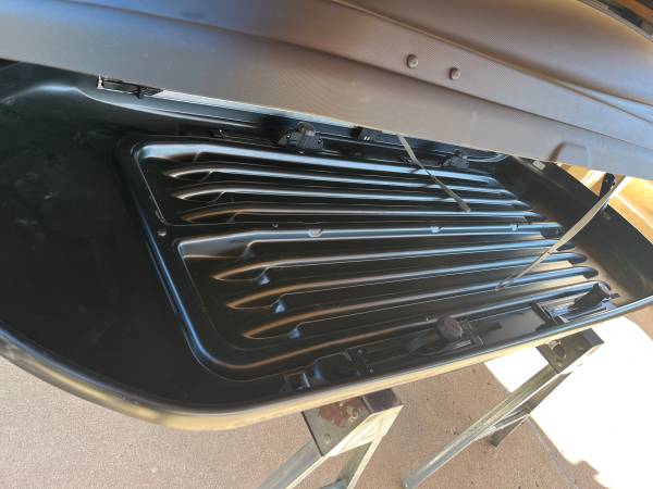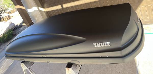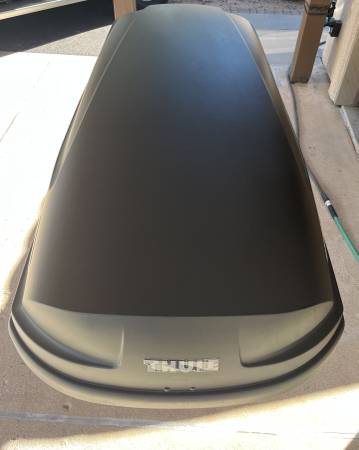 2018 year model Thule model 626 Force XXL cargo box (93"L x 36"W x 18"H, 21 cu ft) in like-new condition for sale. No cracks or damage, opens both sides and everything works perfectly. Dark grey Aeroskin textured surface. Includes locks and key.