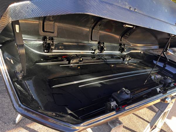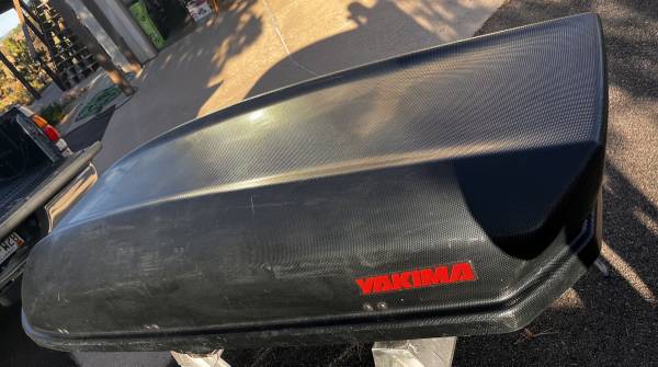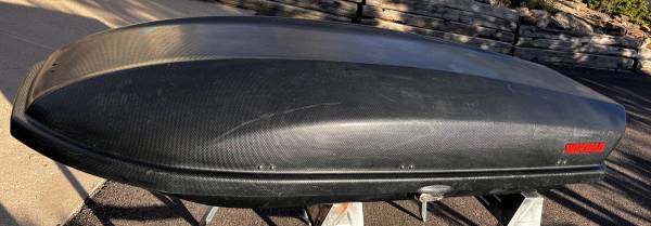 Yakima SkyBox 16 Carbonite cargo box (L 81.00 in x W 36.00 in x H 15.00 in, 16 cubic ft) in excellent condition. Double-sided opening and all components work as they should. Includes locks and key. No cracks or damage but does have typical scratches and scuffs consistent with regular use.