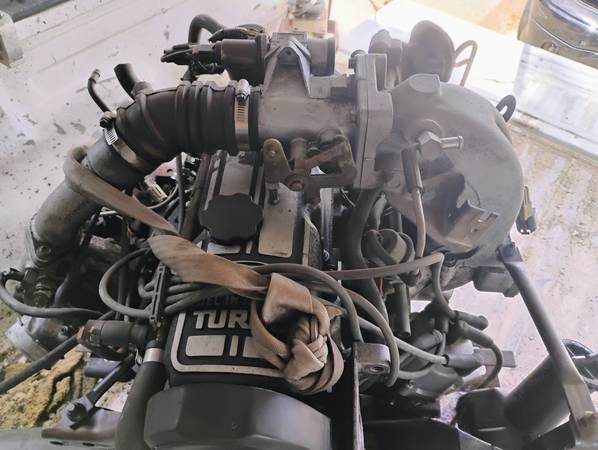 2.3L TURBO CHARGED ENGINE WITH A BORG WARNER 5-SPEED MANUAL TRANSMISSION AND ENGINE HARNEST. THIS IS DEFININATELY A HARD TO FIND!! COMBO.