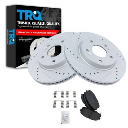 TRQ Front Performance Brake Rotor Drilled Slotted TRQ Front Brake Pads Ceramic Pair for Elantra/Elantra Coupe/Elantra GT/Forte/Forte Koup / Forte5 / Soul/Veloster Compatible with 2009-2012 Hyundai...