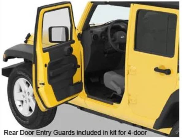 Door Sill Entry Guards -- 1 set. Protects door sill from scuffs and scratches. Fits 2007 to 2018 Jeep Wrangler JK. Four pieces can be used on two door or four door models. Instructions included. New, never installed. Asking $25 obo.