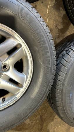 SELLING THIS SET OF WHEELS AND TIRES LIKE NEW TIRES 265/70/R16 WHEELS 16X8 Bolt Pattern: 5x150 DOT 50/22 TIRES ARE MICHELIN DEFENDER LTX IN A GOOD CONDITION 90% TREAD THEY CAME ON A LEXUS LX470 2000...