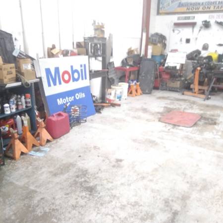 There are lots of tools and shop equipment as well as automotive parts and supplies.