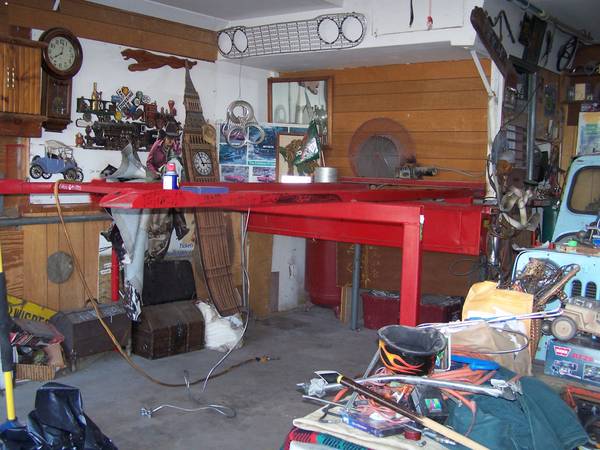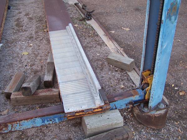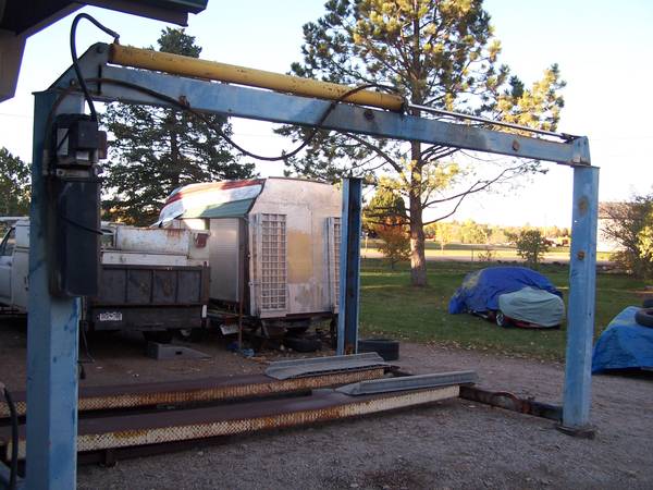 If nobody wants the "perch" I had a Triumph parked on for 20 years inside my garage it will be scrapped...the lift is 9000 pound rated and requires a fork lift to remove. I no longer have a use for the lift after the removed car. Call if interested no particular hurry getting rid of the lift but the perch might be scrapped in 5 days. hurry hurry if you want to cut it apart and make a place to stack toys like your deer hunting equipment or motorcycles or any classis vehicle or boat on trailer. The lift does leak oil when parked UP but not when parked DOWN.
