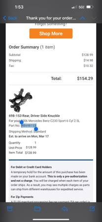 698–153 rear knuckle driver side, brand new never used. Just bought the wrong part, number RB698153